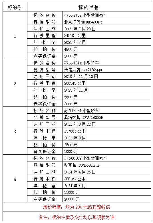 ②拍賣成交3日內(nèi)繳清成交價款、成交價5%的拍賣傭金(拍賣傭金不足500元時按500元收?。┘皹?biāo)的①、標(biāo)的②評估費(fèi)各1000元;
