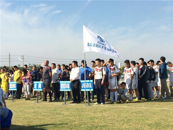9月13日上午,園區(qū)生產(chǎn)力中心的草坪上隨著園區(qū)黨工委副書(shū)記、管委會(huì)副主任駱敏女士的一聲令下,蘇宿園區(qū)“可成杯”第三屆足球聯(lián)賽正式開(kāi)始了。園區(qū)開(kāi)發(fā)公司全體隊(duì)員滿懷激情、熱情萬(wàn)丈健步進(jìn)入球場(chǎng)。