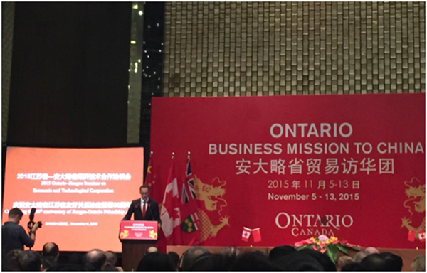 11月6日,JSSD招商團(tuán)隊(duì)代表園區(qū)應(yīng)邀赴寧參加2015江蘇省—安大略省經(jīng)濟(jì)技術(shù)合作洽談會(huì)。江蘇省和(加拿大)安大略省兩省政府代表,企業(yè)、協(xié)會(huì)、高校代表共300人參加洽談會(huì)。