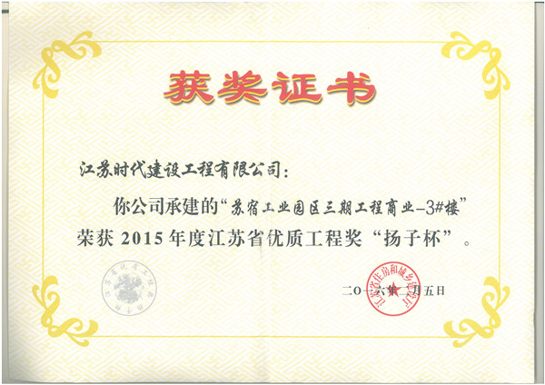 江蘇省“揚子杯”優(yōu)質(zhì)工程獎是我省建設(shè)工程質(zhì)量最高榮譽獎,為省人民政府確定的行政獎勵, 代表了我省當(dāng)前工程建設(shè)質(zhì)量的最高水平。揚子杯每年評審一次,評選對象為我省境內(nèi)、已經(jīng)建成并投入使用的各類建設(shè)工程。該獎的設(shè)立旨在促進建設(shè)和施工單位提高工程質(zhì)量水平、增強建筑精品意識。