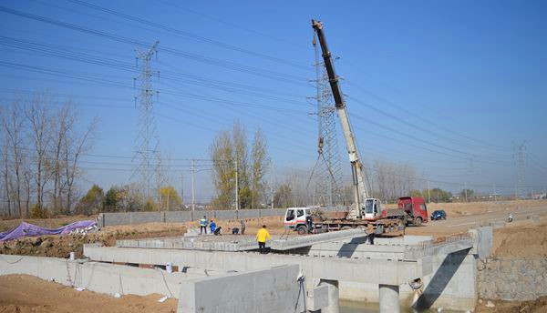 天柱山路跨民便河橋梁梁板正式吊裝