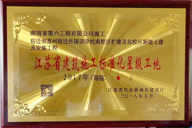 近日,江蘇省住建廳公布的2017年度江蘇省建筑施工標(biāo)準(zhǔn)化星級(jí)工地項(xiàng)目名單,宿遷市蘇州外國(guó)語(yǔ)學(xué)校南校區(qū)擴(kuò)建及北校區(qū)新建土建及安裝工程項(xiàng)目榮耀上榜。
