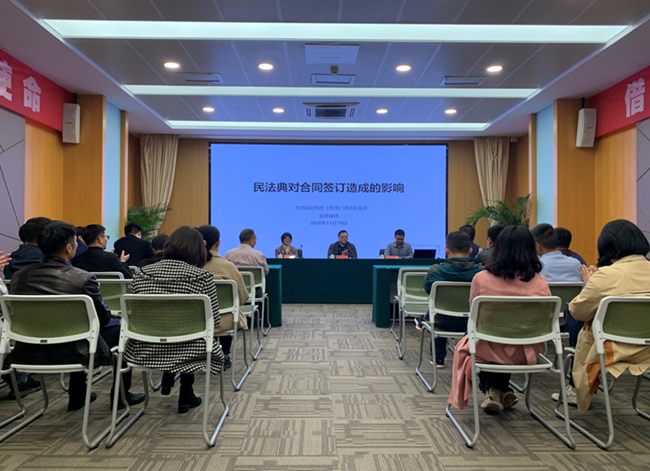 11月19日下午,我司舉辦《民法典》解讀專題講座,北京觀韜中茂(蘇州)律師事務所張輝律師主講,開發(fā)公司副總裁黃健主持,開發(fā)公司全體人員、建發(fā)公司、蘇宿鄰里公司相關人員參加講座。