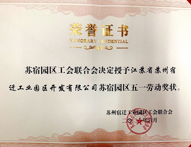 近日,開發(fā)公司榮獲“蘇宿園區(qū)五一勞動(dòng)獎(jiǎng)狀”,系園區(qū)首次表彰的五一勞動(dòng)獎(jiǎng)項(xiàng)。