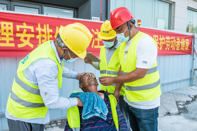 通過此次應(yīng)急演練,現(xiàn)場員工對高溫中暑的自救、互救方法有了更深的認識,加強了現(xiàn)場作業(yè)人員應(yīng)對突發(fā)情況的反應(yīng)能力、提高了應(yīng)急救援技能,增強了戶外工人安全防范意識。借助此次應(yīng)急演練機會,結(jié)合高溫天氣以及實際情況,各項目部對防暑降溫所需物資進行了全面梳理,合理儲備藿香正氣水、人丹、5%碳酸氫鈉等應(yīng)急物資,為安全生產(chǎn)和工人的健康提供了有力保障。
