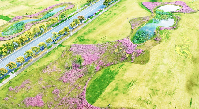 2023年10月1日,蘇宿工業(yè)園區(qū)蘇州公園北側綠地的粉黛亂子草盛開了,一片片粉色花海如夢似幻,吸引游人前來觀賞,樂享國慶假期。