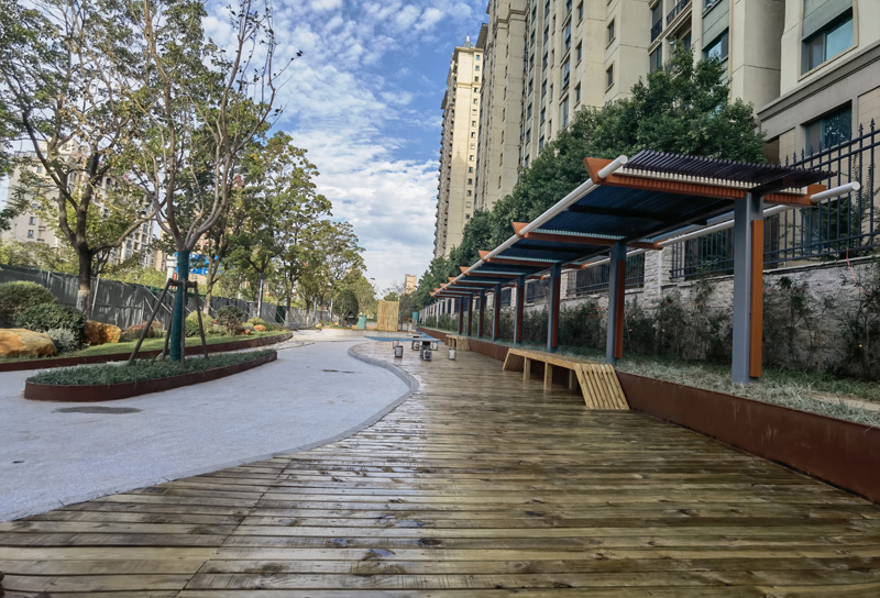口袋公園不僅要好看,更要實用。青海湖西路微公園項目是園區(qū)2022年為民辦實事工程之一,是在青海湖西路外側15米綠化帶內(nèi)進行升級改造,改造之初,曾是封閉得綠化帶,改造后增加了成人及兒童健身游樂設施,邊上配套了公共廁所,居民出小區(qū)就有休閑游憩得小場所,實現(xiàn)居民出門5-10分鐘即有一片綠色共享空間。