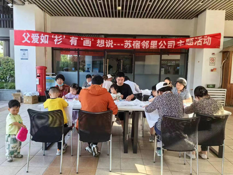 父愛如山,厚重?zé)o言;父愛如海,寬廣無垠。為了表達(dá)對(duì)父親的感激和尊重,弘揚(yáng)家庭教育價(jià)值觀,倡導(dǎo)和諧親子關(guān)系,6月7日下午,蘇宿鄰里公司在明日鄰里中心中庭開展“父愛如‘衫’ 有‘畫’想說”主題活動(dòng)。