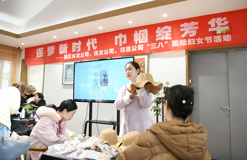在手工制作環(huán)節(jié),女職工們化身“匠心設(shè)計(jì)師”,運(yùn)用絲帶、花草等材料精心制作專(zhuān)屬禮帽?,F(xiàn)場(chǎng)學(xué)會(huì)運(yùn)用各自的創(chuàng)意巧思,呈現(xiàn)出風(fēng)格各異的作品。