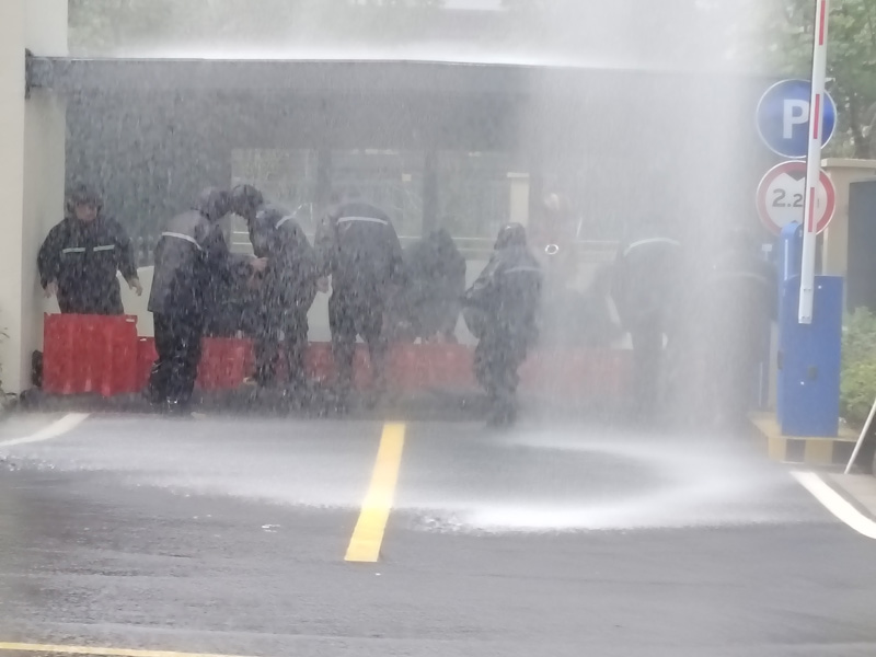 演練模擬受極端暴雨天氣影響,園區(qū)青年公寓出現(xiàn)嚴重積水、地下車庫被淹、樹木倒伏等復雜且具有挑戰(zhàn)性的防汛場景。公司防汛指揮部在接到險情報告后,迅速反應,第一時間啟動應急預案。在總指揮的現(xiàn)場指揮調(diào)度下,應急搶險隊伍迅速到達積水現(xiàn)場,隊員們熟練地安裝移動排水裝置,將路面積水強排至附近排水管道,快速緩解了路面積水狀況。對于地下車庫積水問題,同時對車庫內(nèi)的車輛進行有序疏散和安置,最大程度減少了可能的財產(chǎn)損失。演練過程緊張有序,各環(huán)節(jié)銜接緊密,各部門之間協(xié)同配合默契,充分展示城發(fā)公司應對防汛突發(fā)事件的能力,實現(xiàn)了從預案到實操的無縫銜接。