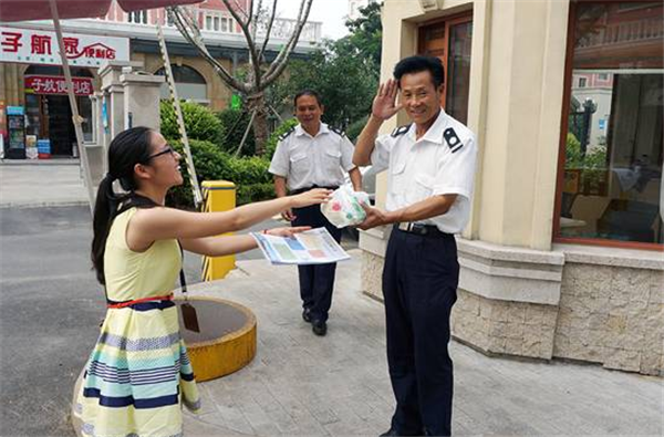 8月27日,社區(qū)為了對奉獻在基層一線的保安、保潔表達關心與敬意,特地準備了防暑降溫物品,對高溫執(zhí)勤、勞作的在崗人員進行了慰問,并叮囑大家注意休息、做好防暑降溫。