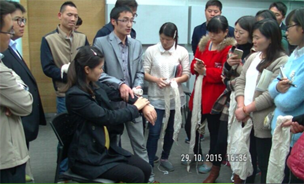 理論課上,講師們詳細生動地介紹了應(yīng)急救護的基本知識,講述止血、包扎、固定和搬運等四方面內(nèi)容。實訓(xùn)課上,參訓(xùn)者饒有興致地進行一對一實際操作,講師們現(xiàn)場進行指點。