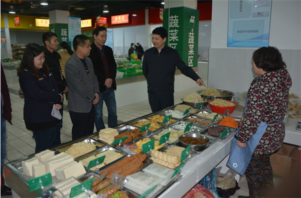戈亮一行現(xiàn)場(chǎng)聽取了菜場(chǎng)負(fù)責(zé)人開業(yè)準(zhǔn)備工作情況匯報(bào),實(shí)地察看了生鮮菜場(chǎng)規(guī)劃布局、開業(yè)方案、食品安全臺(tái)賬、食品安全檢測(cè)室設(shè)備,與各經(jīng)營戶親切交談。