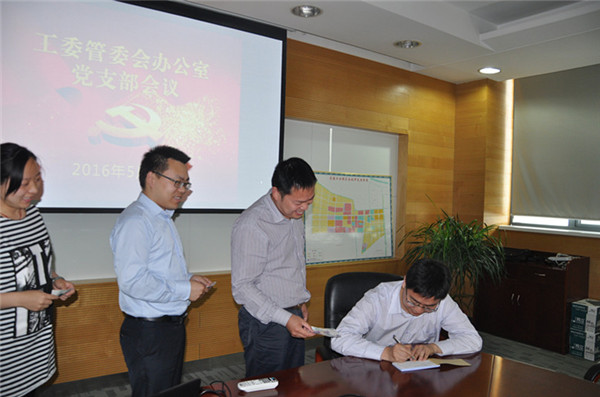5月20日是園區(qū)工委管委會辦公室黨支部的黨員活動日?;顒赢?dāng)天,黨支部全體黨員按照園區(qū)“兩學(xué)一做”學(xué)習(xí)教育部署開展集中學(xué)習(xí)。