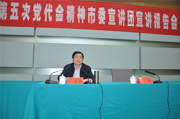 會上,張惠春圍繞市第五次黨代會基本情況,五年來的主要成績和經(jīng)驗,今后五年奮斗目標、工作主線及重點任務等幾個方面詳細解讀了市第五次黨代會精神,報告內容豐富、內涵深刻。