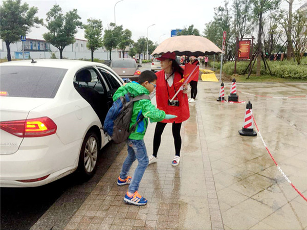 10月21日上午,第一組家長(zhǎng)志愿者首次上崗,他們?cè)谟曛兄笓]車(chē)輛、疏導(dǎo)交通,用實(shí)際行動(dòng)為孩子們撐起了一把“愛(ài)心保護(hù)傘”。